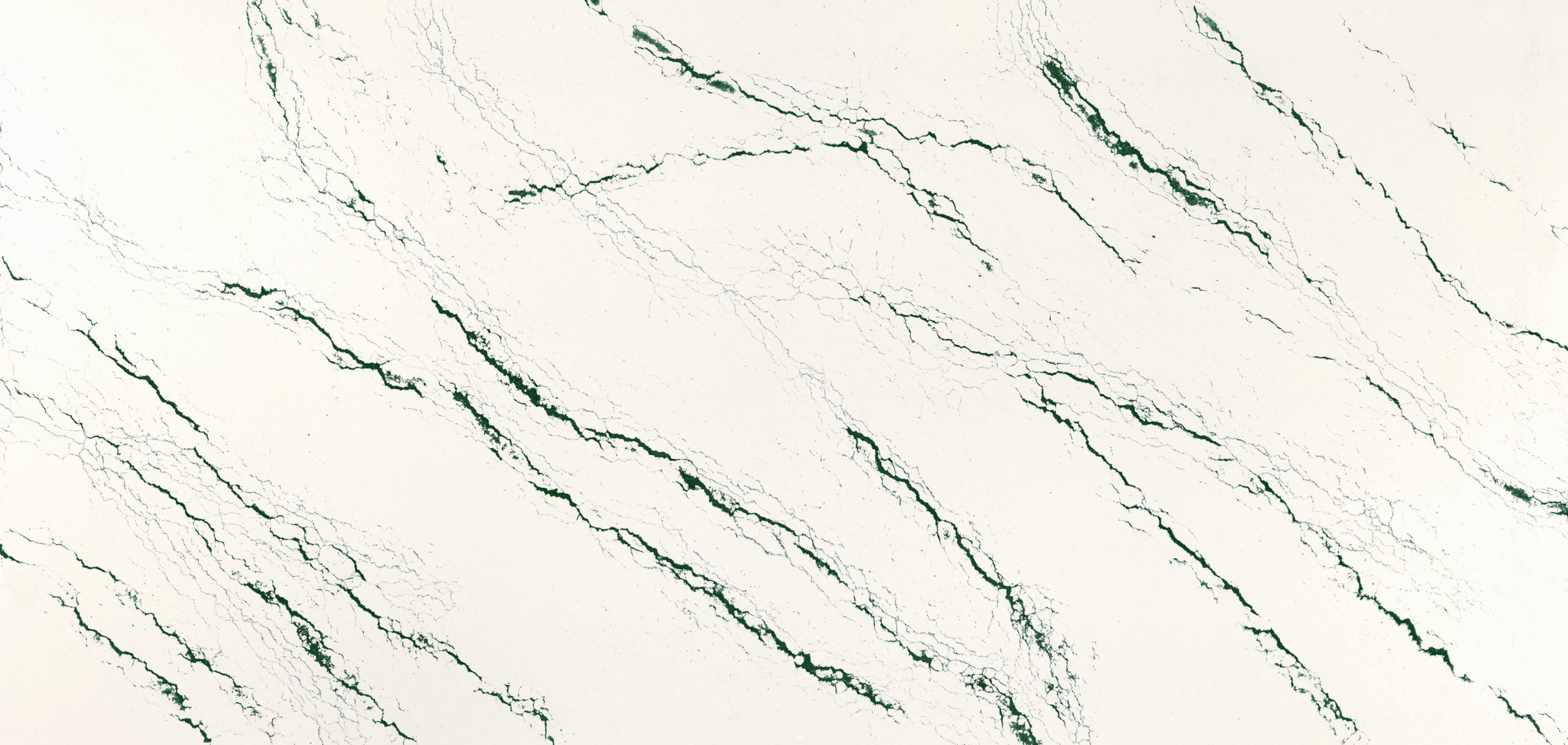 Ivybridge Cambria Quartz Has Dark teal diagonal veins on an arctic white background that creates a powerful sense of depth, while delicate gold shimmer adds a playful, effervescent quality. Used in Kitchen Countertops, Bathroom Countertops, and all other applicable surfaces. Emerald Green Veins cascade diagonally across every Ivybridge Slab, giving you the Marble look and feel, with an extra pop of color. If you have Hunter Green accents in your Living Space, Ivybridge Cambria Quartz will pair beautifully.